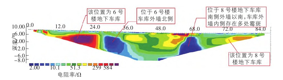 Công ty vàng đã sử dụng phương pháp điện mật độ cao WGMD-9 để phát hiện các kênh thấm nước ngầm trong khu dân cư. Bằng cách quan sát và phân tích các hình ảnh đảo ngược điện trở suất rõ ràng, theo dõi các dị thường điện trở suất thấp để xác định vị trí của các kênh thấm nước ngầm và khu vực giàu nước, cuối cùng người ta đã phát hiện ra rằng nước ngầm trong khu vực chảy từ phía tây sang đông dưới ảnh hưởng trọng lực. Nó đi qua hai kênh rò rỉ giữa trần nhà để xe dưới lòng đất và bức tường bên ngoài của nhà để xe ngầm, hội tụ vào một khu vực giàu nước ở phía đông nam của khu vực, gây ra sự rò rỉ nước cục bộ ở phần dưới của độ dốc đá.